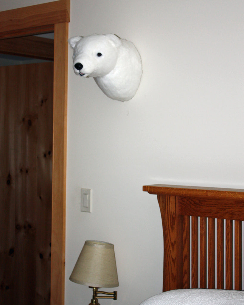 Anouk is a large plush polar bear mount. Monarch of the arctic, she is posed with her head turned just to the left. She looks very regal when her fur is smoothed back, very fierce when it's roughed up.