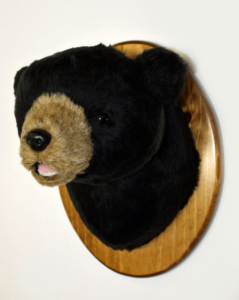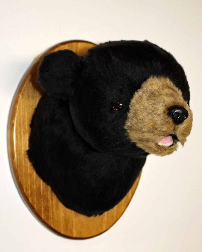 Harry is a small plush black bear mount. He has a sweet smile showing just the tip of his little pink tongue. Forever happy and always willing to wear accessories, he is posed looking straight ahead.