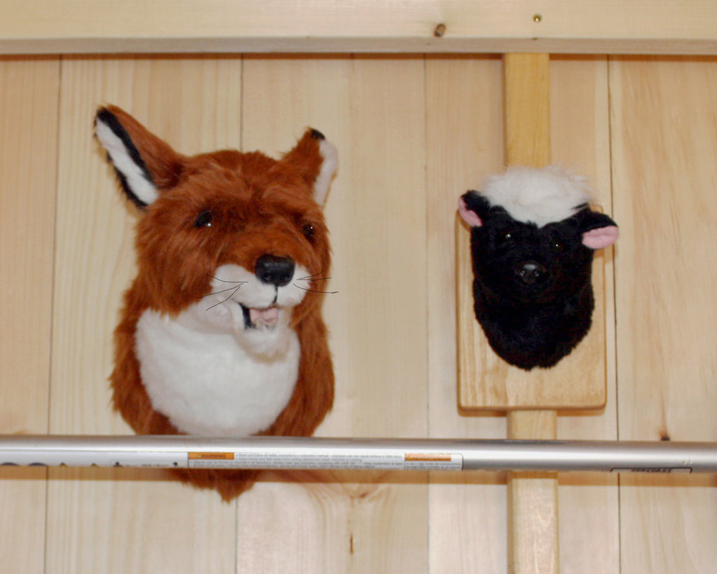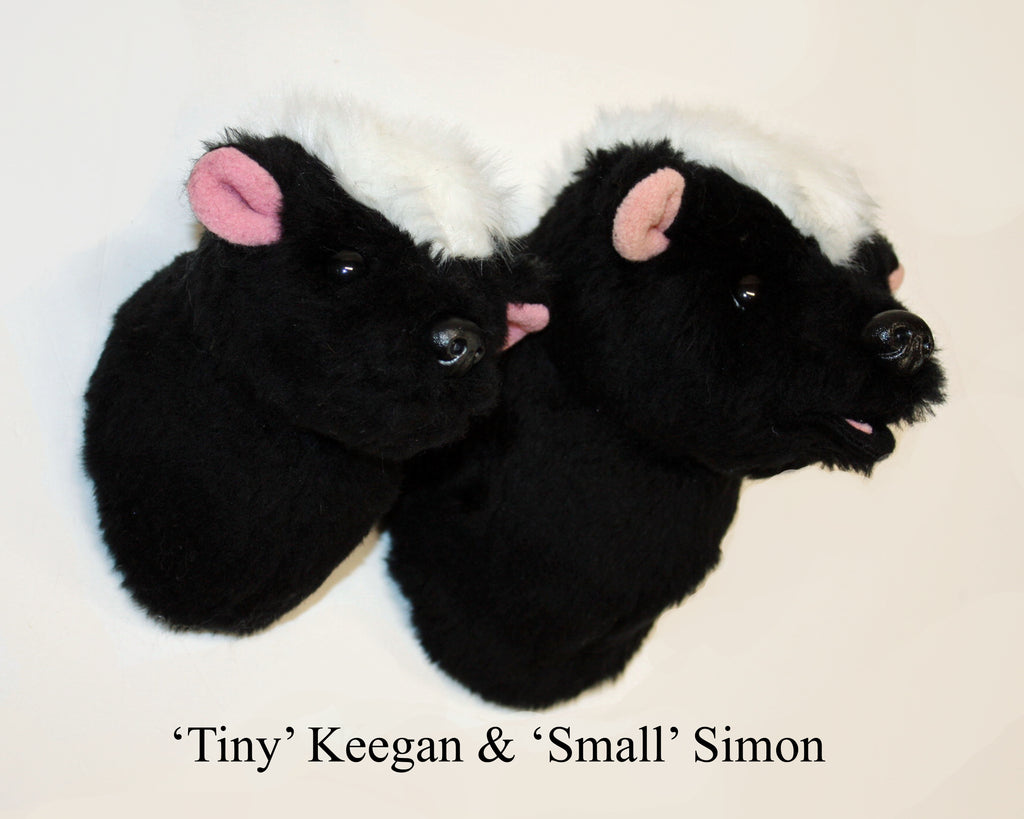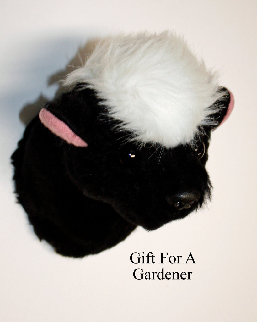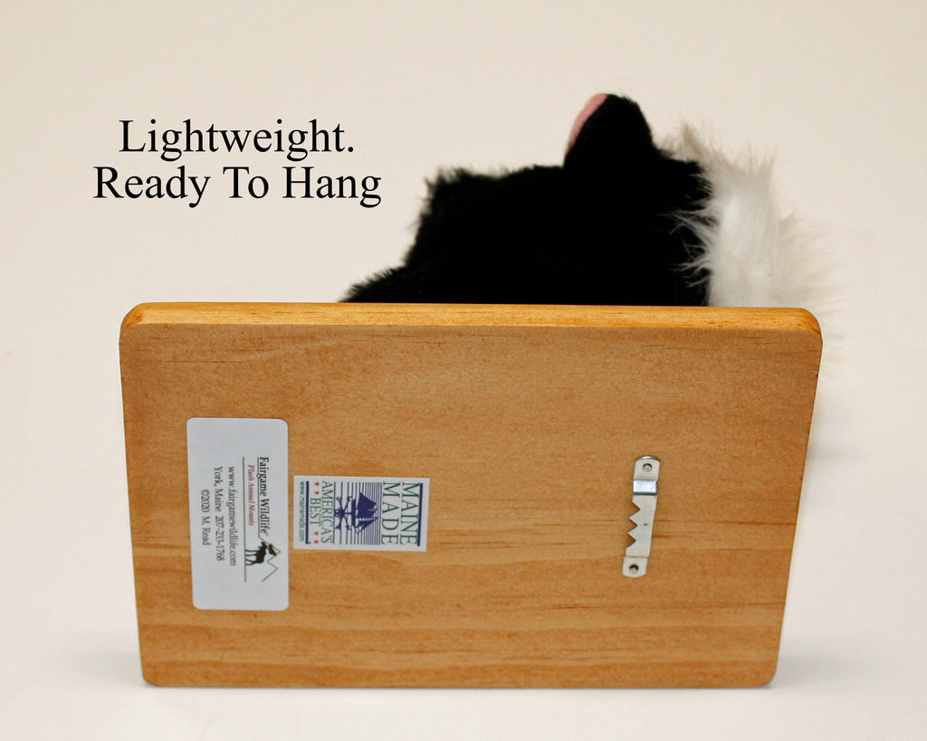 Keegan, "Little Fiery One", is a tiny plush skunk mount. Very cute with beady little eyes and an over-size nose; he's one garden pest you can actually enjoy. Easy to hang. Finished as a shoulder mount or on a plaque.